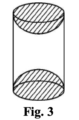 - A wooden article was made by scooping out a hemisphere from each end of a solid cylinder, as shown in Fig. 3. If the height of the cylinder is 10 cm and its base is of radius 3.5 cm. Find the total surface area of the article.